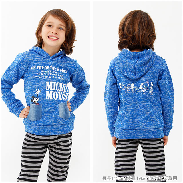 裏起毛で着心地もあたたか◎ バックにいろんなミッキーがいるのもPOINT♪